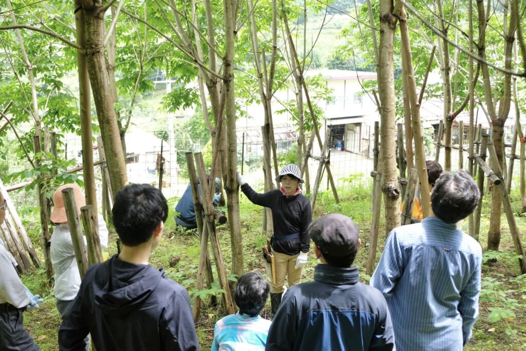 「身の回りにあるものを使ってなんでも作ってしまうことに驚きましたね。私自身、工芸的な漆塗りの知識はあったんですけれど、植物としての漆を育てることは初めてでしたし、『漆ぬるべ会』のメンバーも漆の育て方や採取に関して手探り状態からスタートしたんです。街に住んでいた私にとっては、何から始めたらよいかわからず、想像のつかない作業でした。でも、おっちゃん同士が『ここに柵を作ろう』といって、自分たちで柵を立て始めたり、漆搔きの足場が必要になったときに『山から竹切ってくるわ』や『ユンボ入れるで』など山や身の回りにあるもので足場をこしらえていくことを間近で見たときにすごくびっくりしました。他にも生活の面では、近所のおばあちゃんがお漬物やお味噌を手作りしていたり、山菜や筍を採って食べたり。田舎という環境だからこその面白さだと思います。」