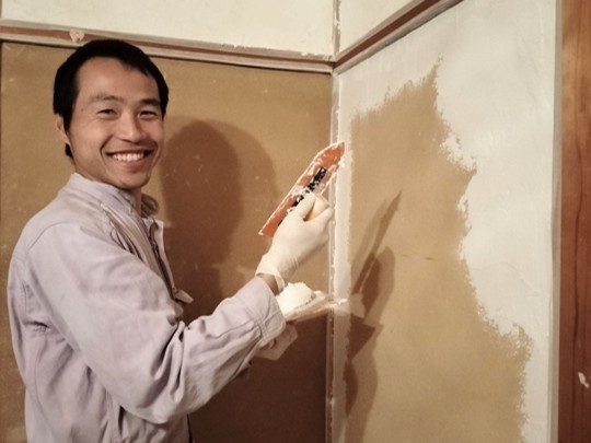 めぐみさん「ほかにも、棚を設置したり、キッチンの戸棚にリメイクシートを貼ったりしました。一階のリビングの壁がぽろぽろとはがれかけていたので、漆喰を塗らせてもらうだけで、部屋の雰囲気が明るくなった気がしています。」