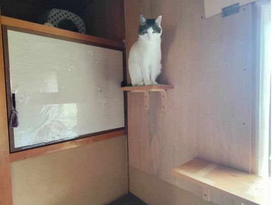 宏樹さん「一応、補修やDIYをする前に、大家さんに毎回許可はもらっていますが、大家さんからは二つ返事で、『自由にしていいよ』と言ってもらっているので、ありがたいです。猫たちが家の中で遊べるように、押し入れの壁に階段をつけて、押し入れキャットタワーも作らせてもらいました。」